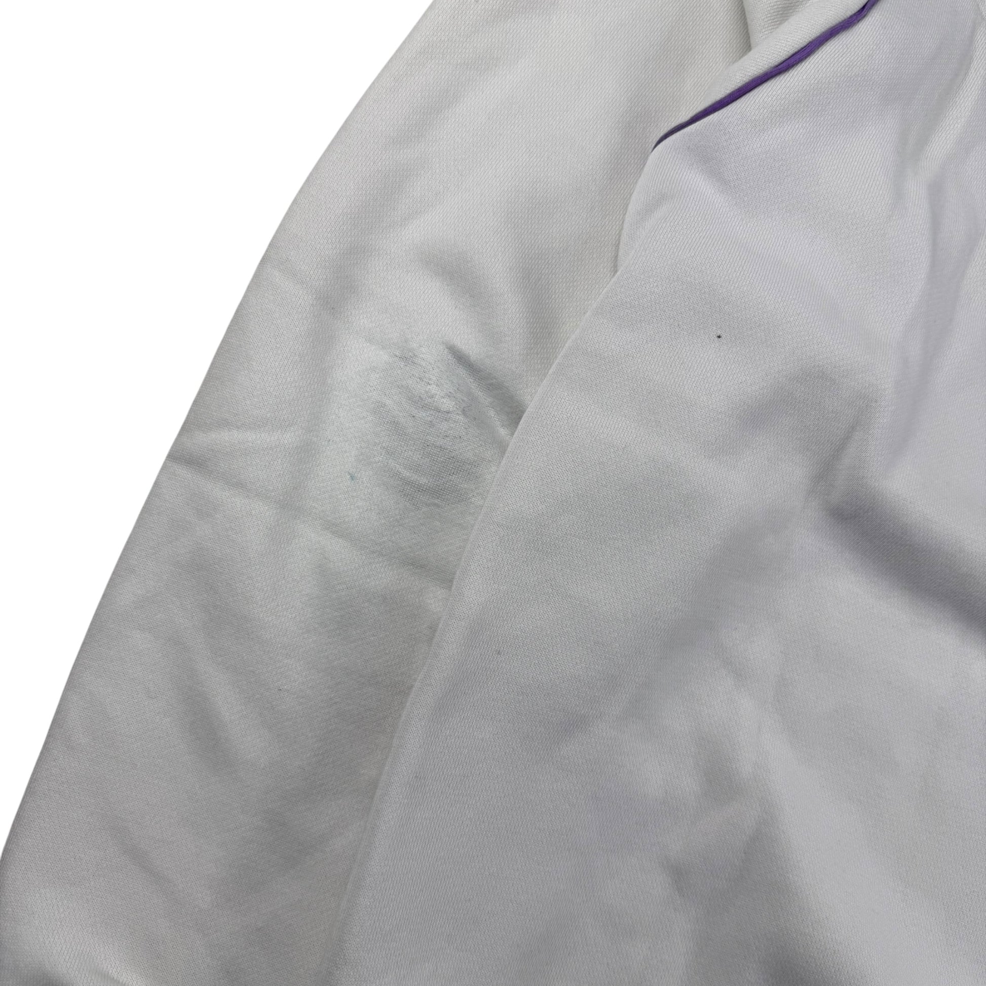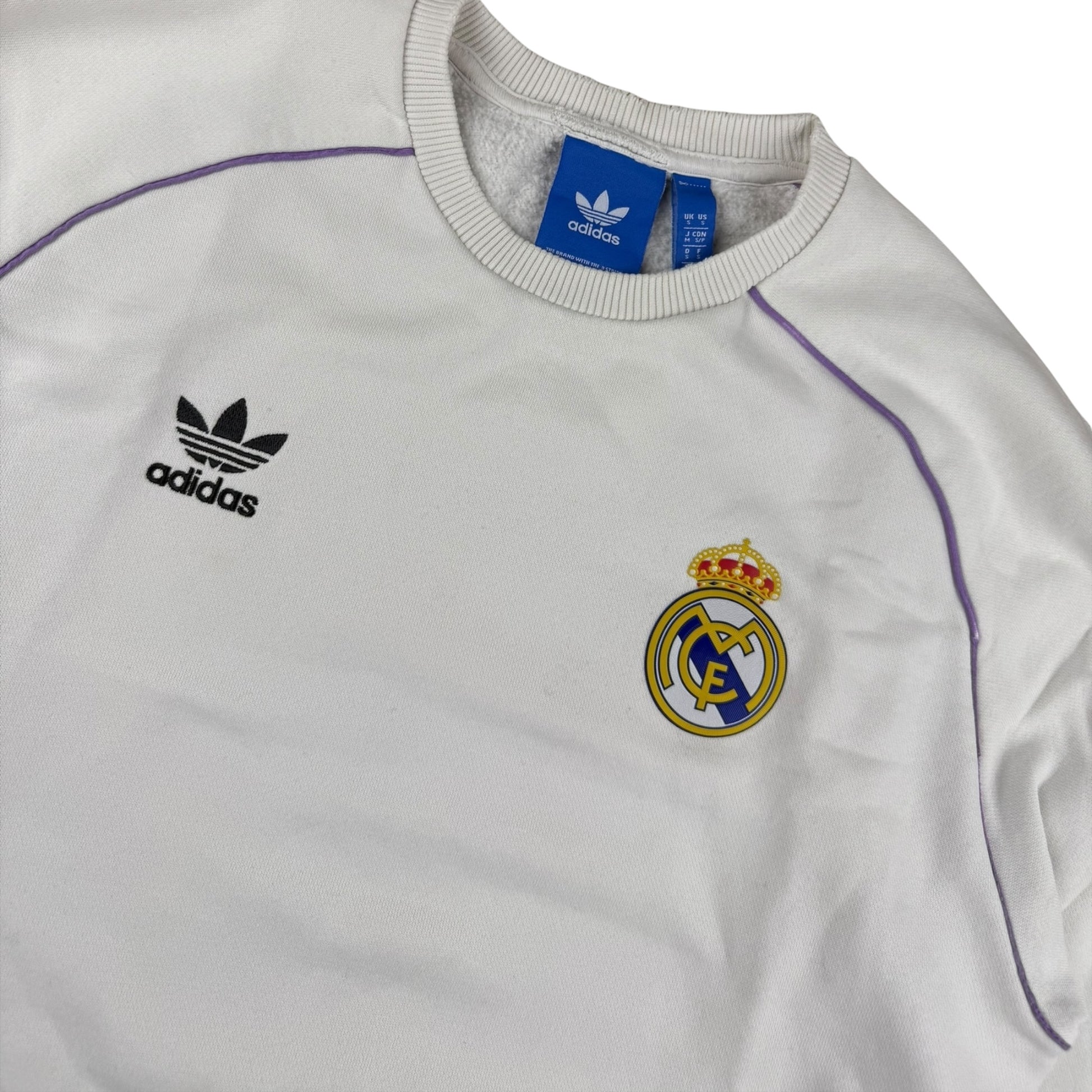 Adidas Real Madrid Pullover – Weiß – Herren S – Vintage Baumwoll-Hoodie 🔹 Marke: Adidas 🔹 Team: Real Madrid 🔹 Stil: Pullover / Hoodie 🔹 Farbe: Weiß 🔹 Größe: S (laut Etikett & Maße) 🔹 Material: 100 % Baumwolle 🔹 Besonderheiten: Klassischer Vintage-Look, aufgedrucktes Real-Madrid-Logo & Adidas-Schriftzug, kein Zipper 📏 Maße (flach gemessen): • Kragen bis Bund: 67 cm • Achsel zu Achsel: 51 cm ⭐ Zustand: 8,5/10 – Sehr guter Zustand, Vintage getragen, keine groben Mängel |