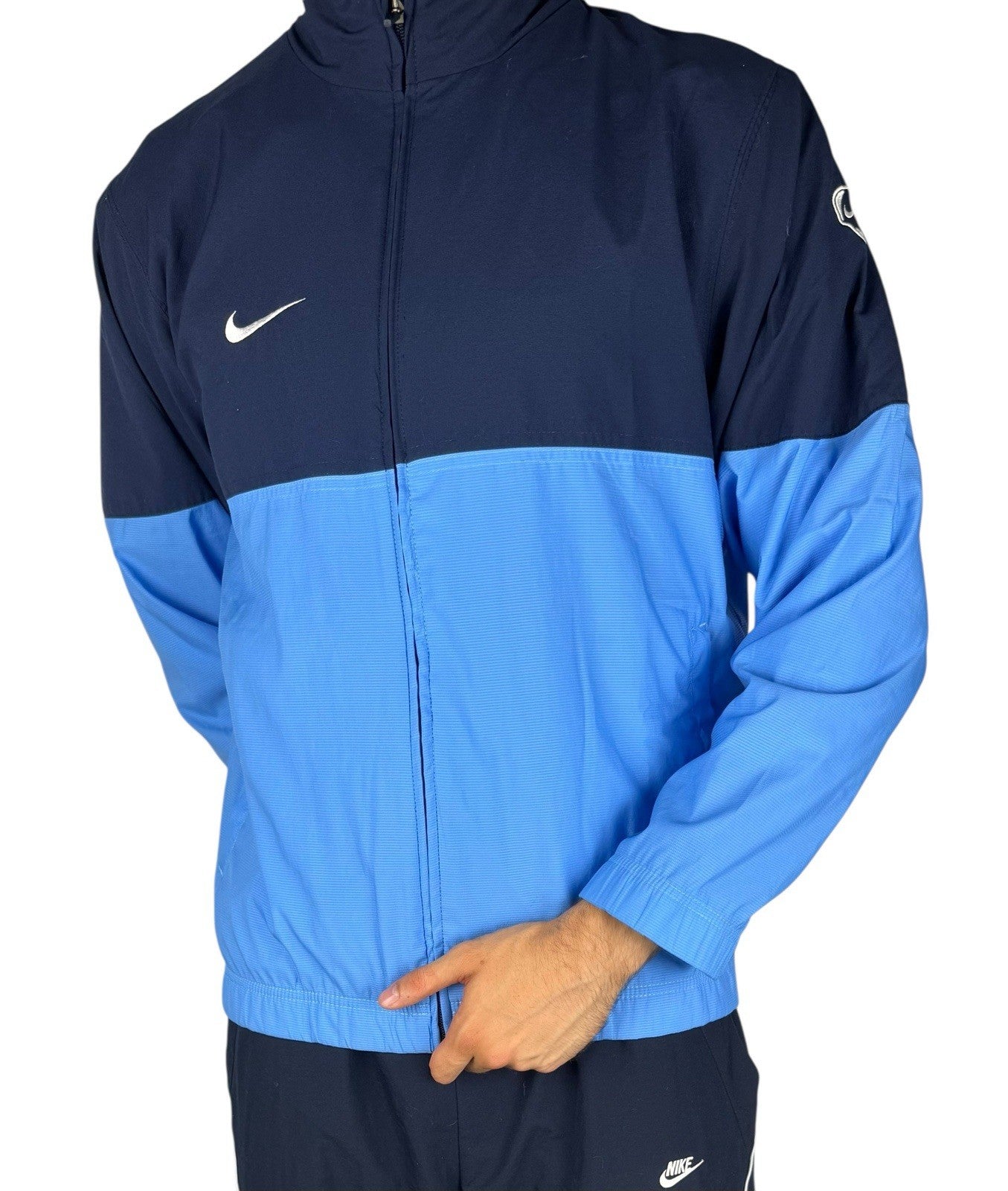 Vintage Nike Trackjacke – Hell-/Dunkelblau, Größe M, Retro Style
